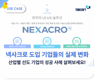 투비소프트 누적 레퍼런스 10,000건을 달성! 각 산업을 선도하는 기업과 기관들이 선택한 안정적이고 확장 가능한 UI·UX 구축 사례를 담았습니다. 투비소프트 고객사례집을 통해, 검증된 혁신의 현장을 직접 확인해보세요.